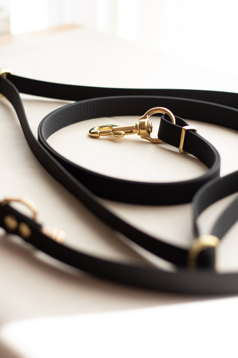 Praktisk håndlavet snor i PVC med hexa prægning. Freyja multiway snoren kan bruges som crossover (over skulderen), rundt om livet alle som en alm hundesnor.